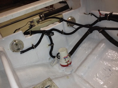 I added a secondary bilge pump to further remove water from the bilge. This new bilge pump also got its own thru-hull fitting.